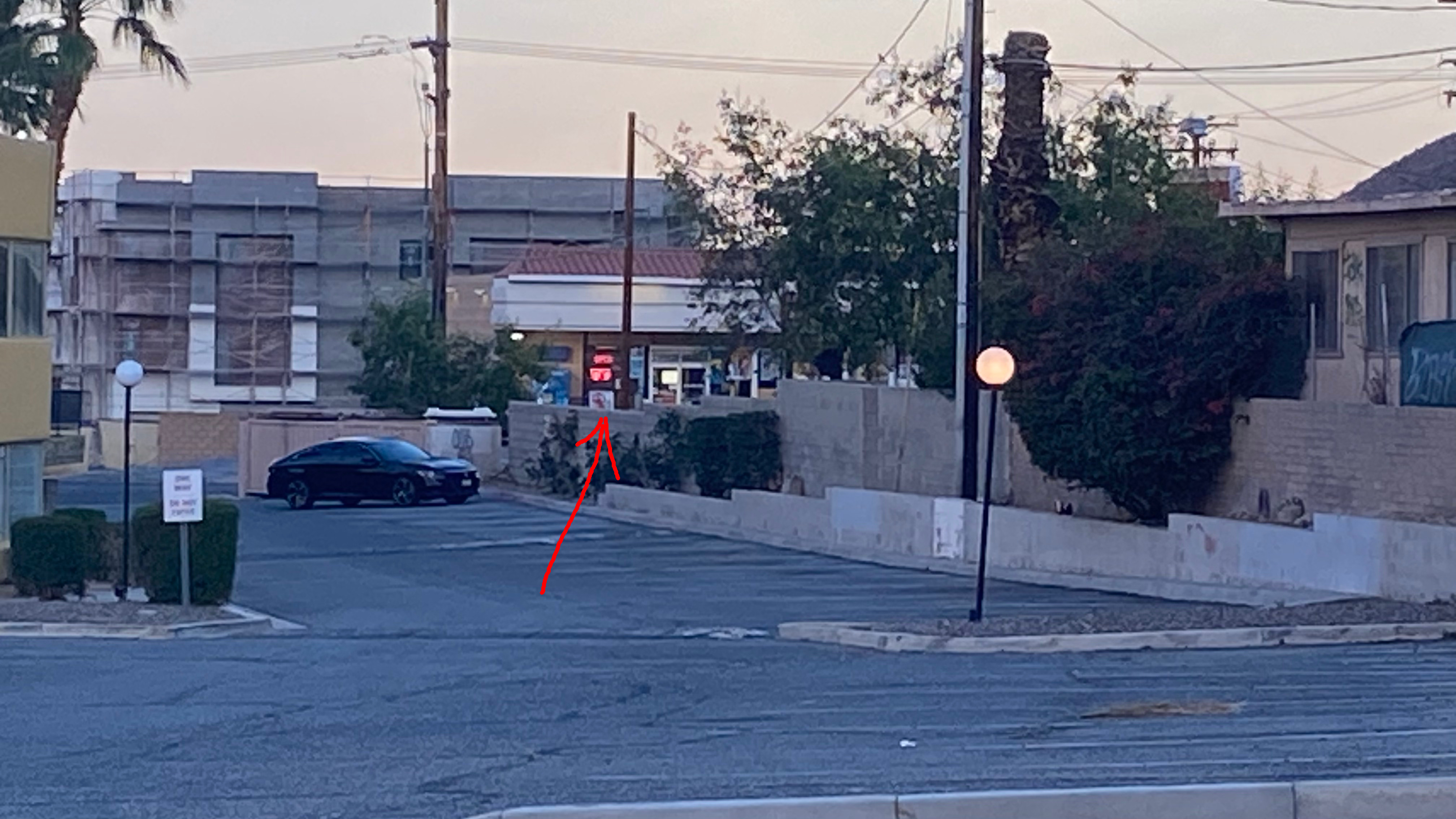 Then a new problem. The way this hotel is arranged, their parking lot basically takes up & IS the road. And the Lyft driver is being directed to the back of the parking lot, where the gate is now Locked. Not one I can get through either. It's a pretty long walk around the block to get to the other side & she's only 6 minutes away. I tell the app to alter the pickup location to the street at the *Front* entrance, which seems to work. And she cancels the ride. Well damn.